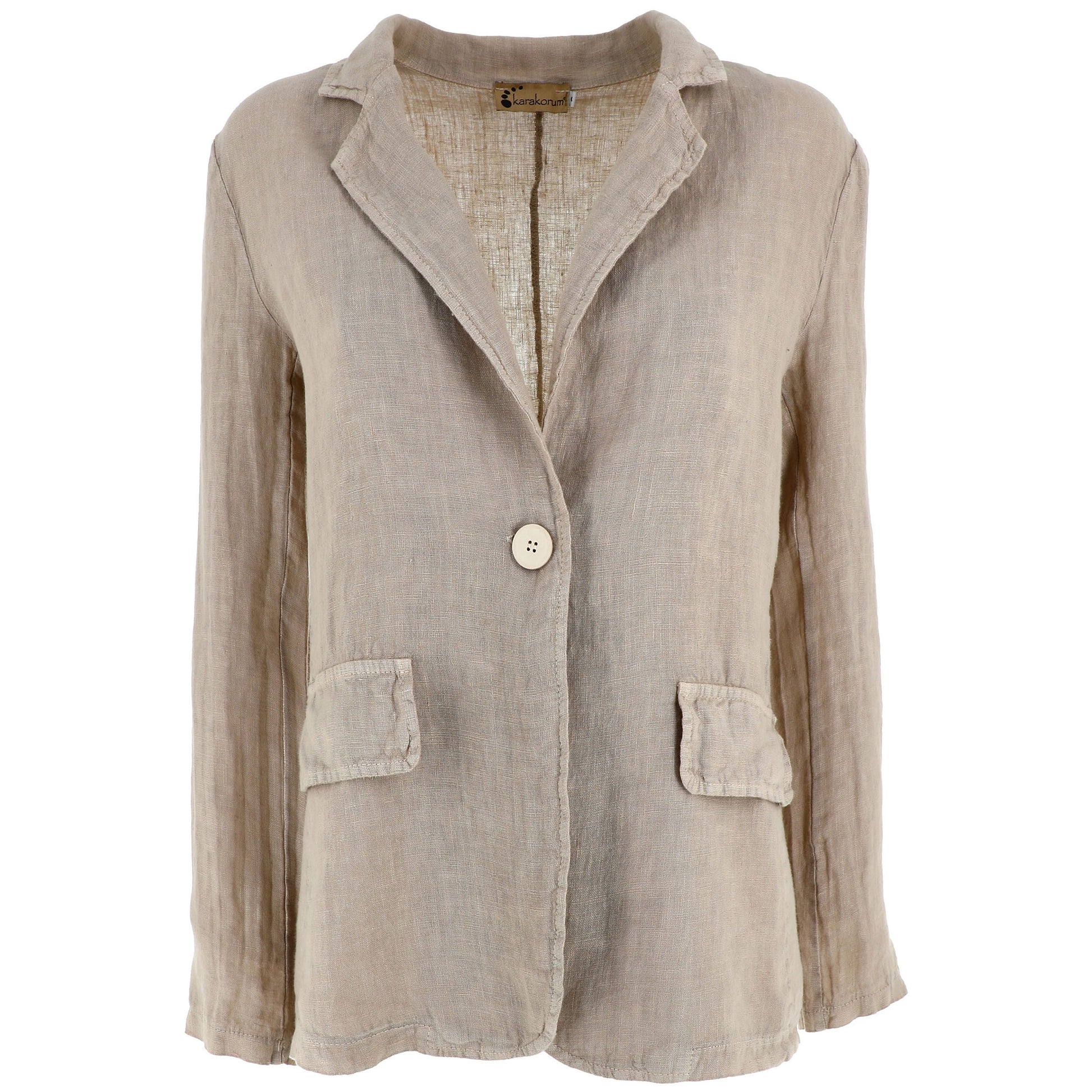 Giacca in lino, dalla vestibilità regolare, con maniche lunghe e scollo a V con rever. Finte tasche sul davanti e chiusura con bottone. Composizione: 100% lino. Provenienza: Italia. Lavare a 30°