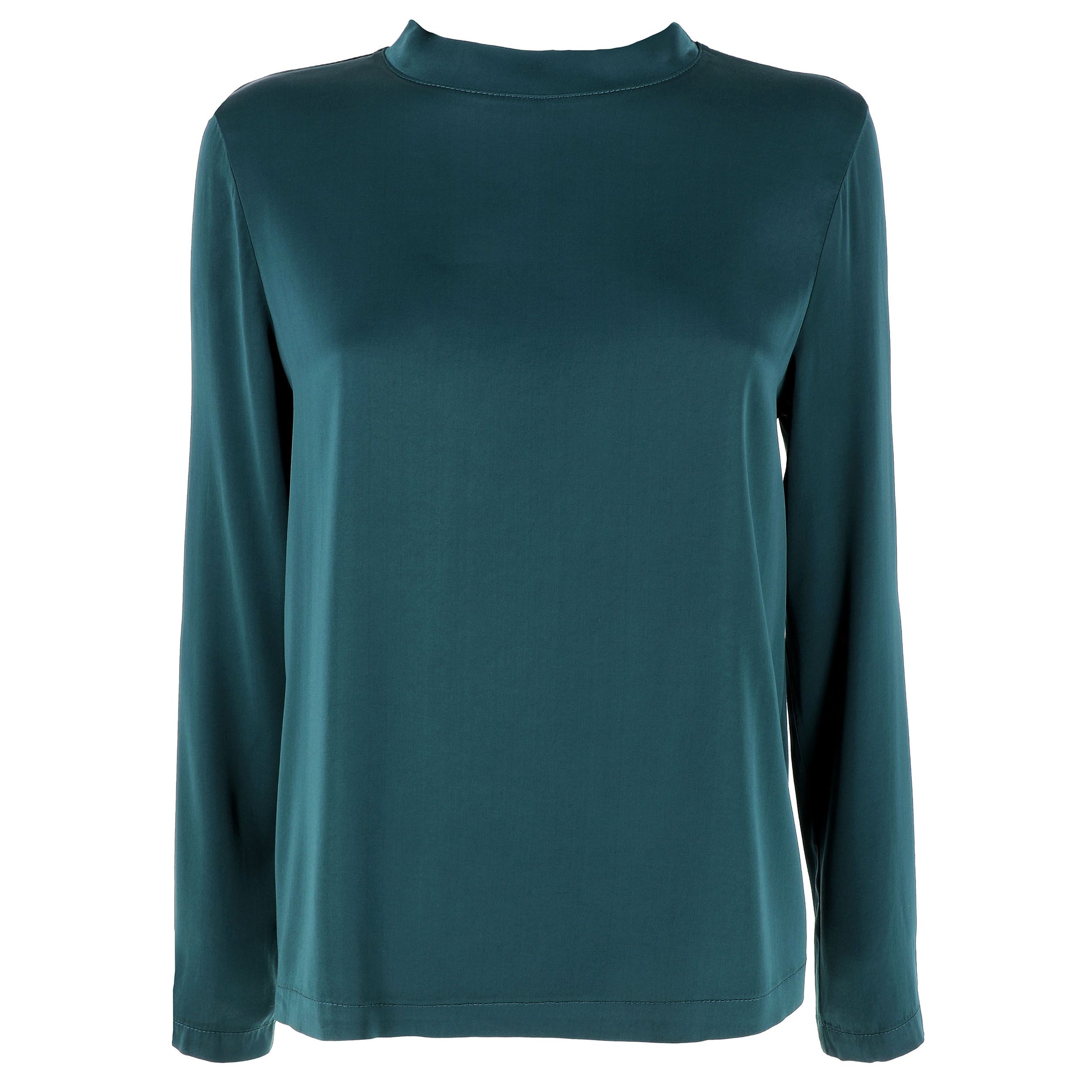 T-shirt girocollo con maniche lunghe in morbido raso stretch di viscosa. Composizione: 100% viscosa. Provenienza: Italia. Lavaggio: Lavare a mano.