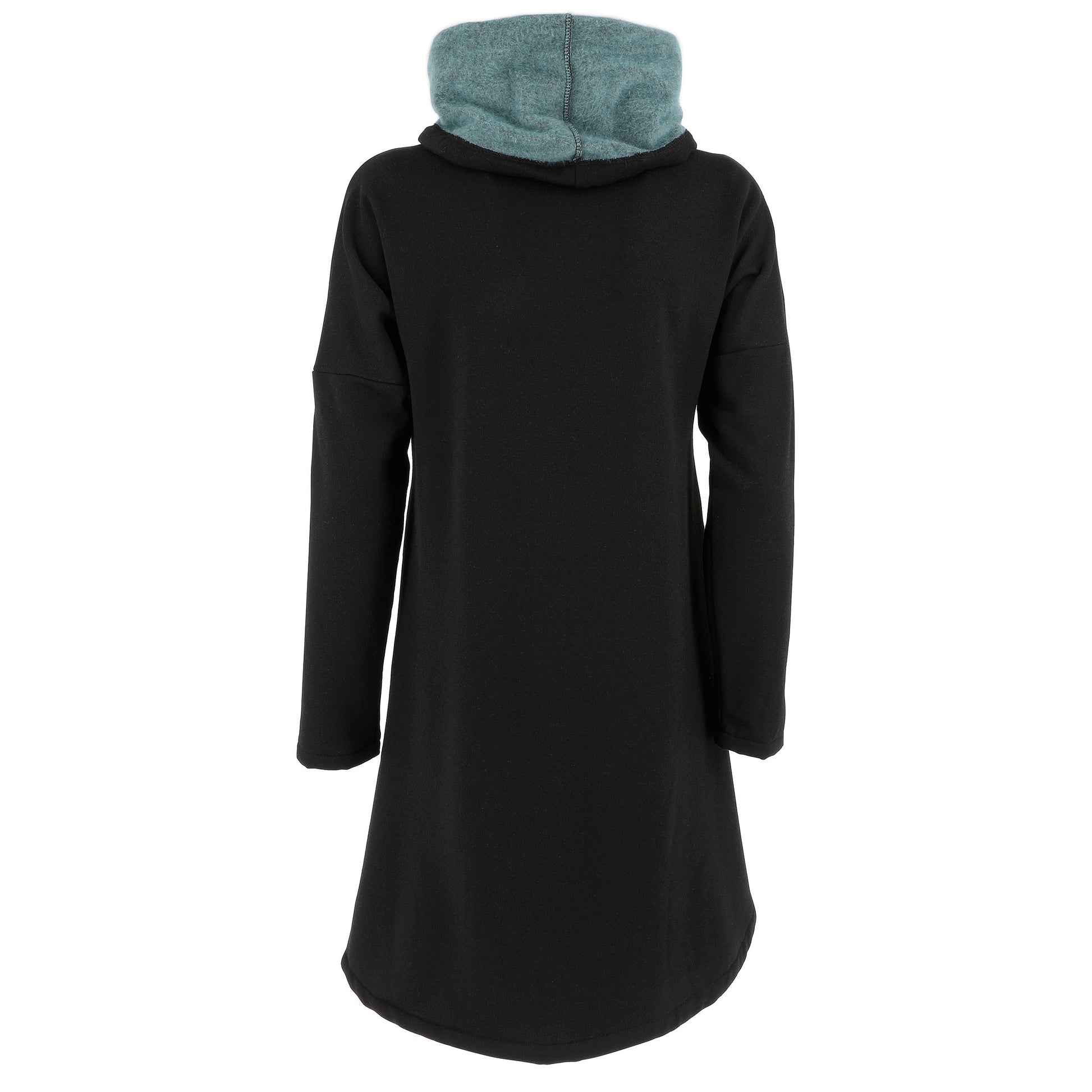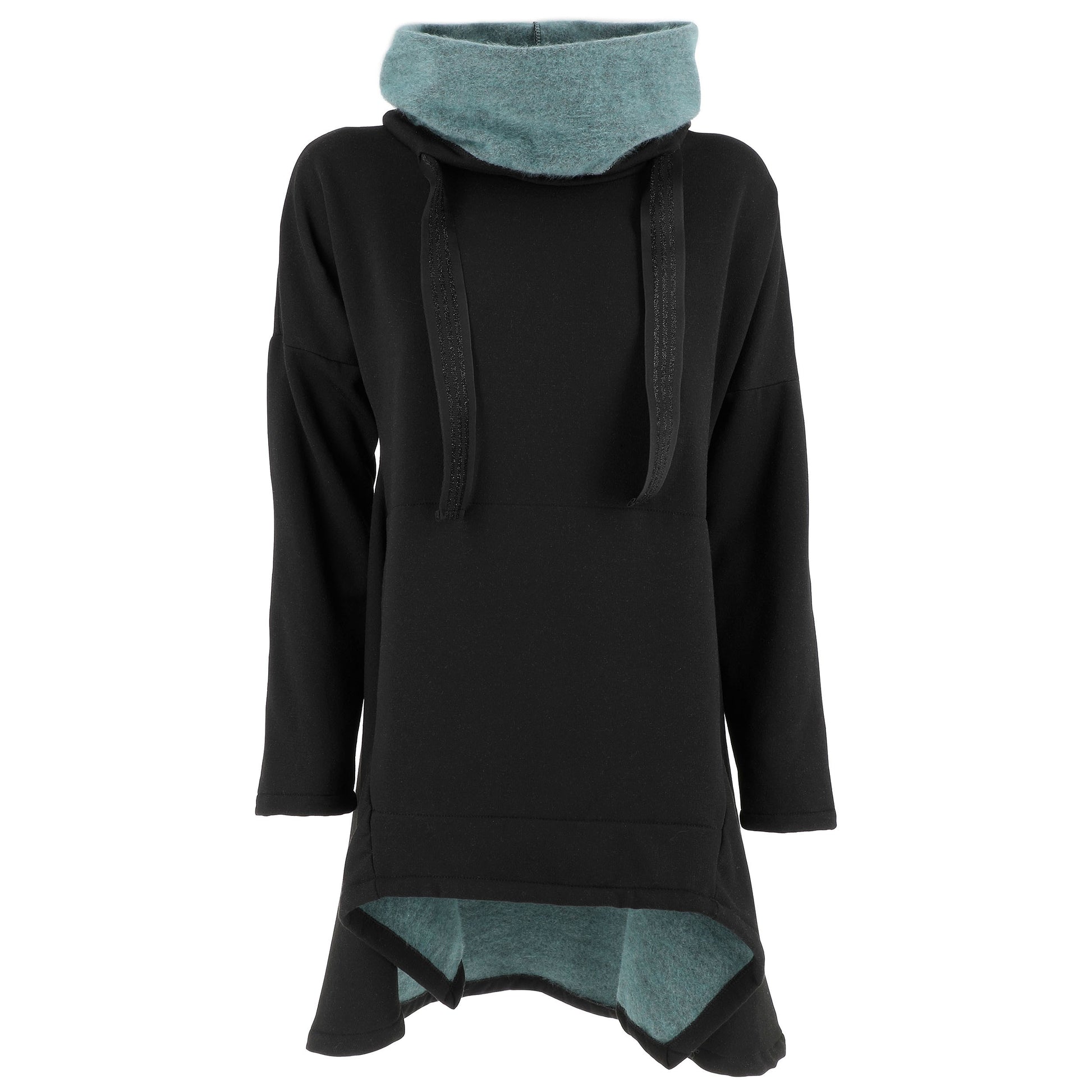 Maniche lunghe e collo alto con possibilità di risvolto.
