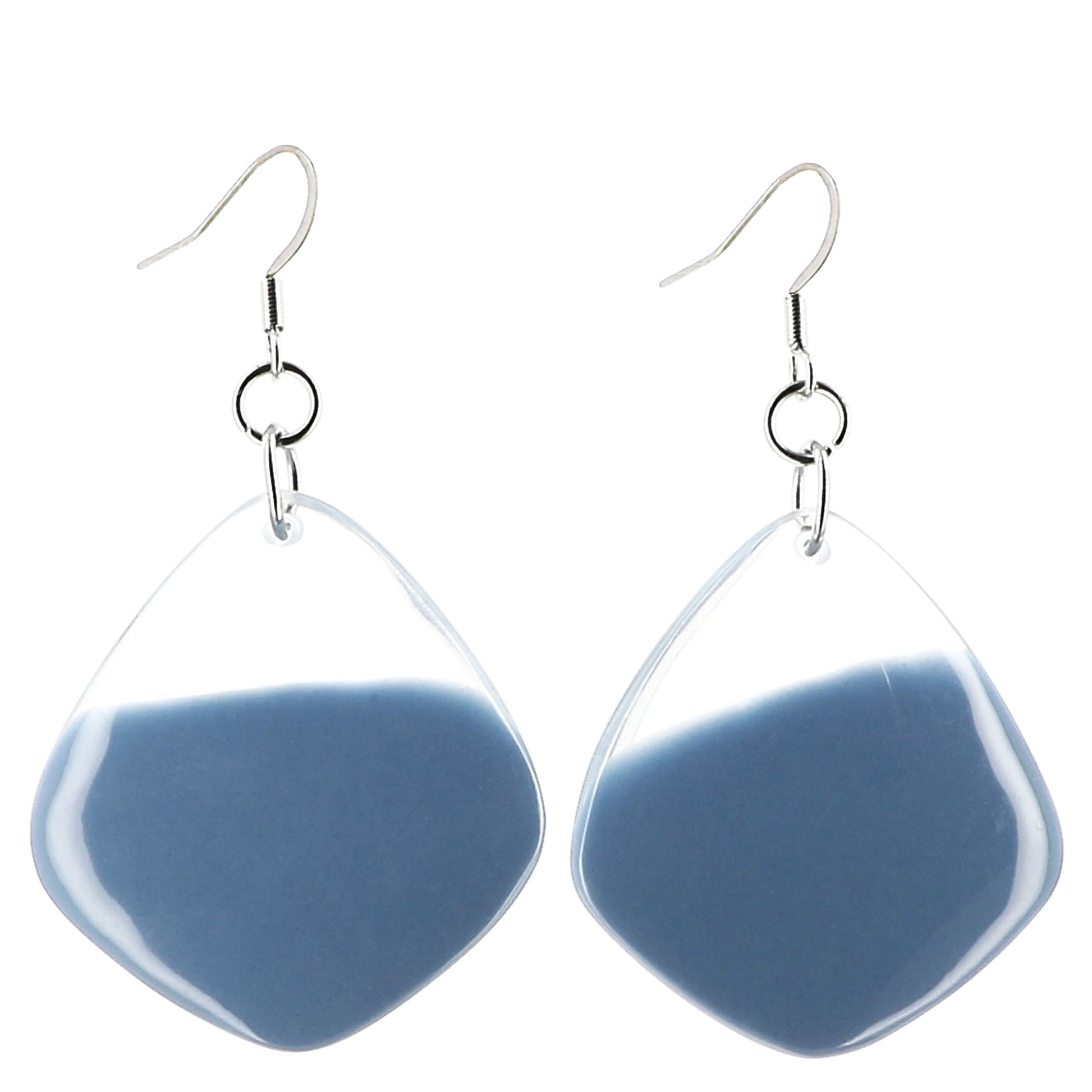 Orecchini pendenti in metallo anallergico con ciondolo in resina semi trasparente. Lunghezza: cm 6 circa. Provenienza: Filippine.