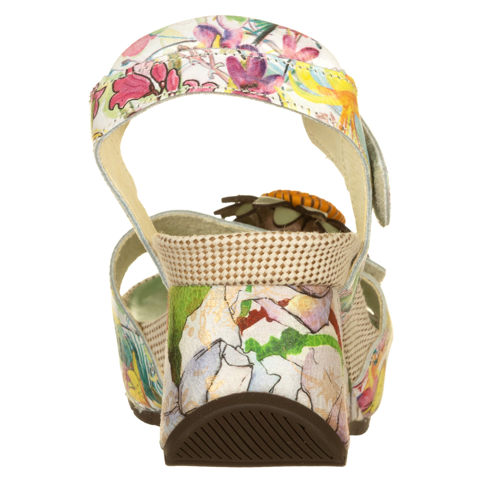 Sandali floreali con zeppa. Ideali per la stagione calda, queste zeppe hanno la suola in gomma e la tomaia in pelle. Questi sandali sono molto più di un semplice paio di scarpe. Offrono un comfort assoluto grazie alla chiusura in velcro che mantiene la caviglia in posizione. Per una giornata casual in città o per una fuga in spiaggia, questi sandali sono perfetti per ogni occasione. Con tomaia in pelle, fodera in pelle e soletta in poliuretano, queste scarpe assicurano una sensazione di morbidezza e comfort a ogni passo. La suola in gomma offre un'eccellente resistenza all'usura e aderenza, garantendo un passo stabile e sicuro. Con un tacco di 7 cm., e un plateau di 3 cm., questi sandali con zeppa aggiungono un tocco di altezza pur rimanendo comodi da indossare tutto il giorno. Possono essere indossati con tutto. Questi sandali sono un must per il vostro guardaroba!