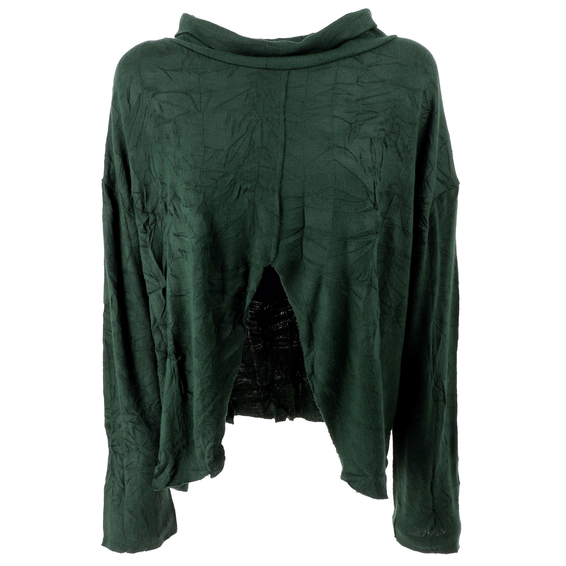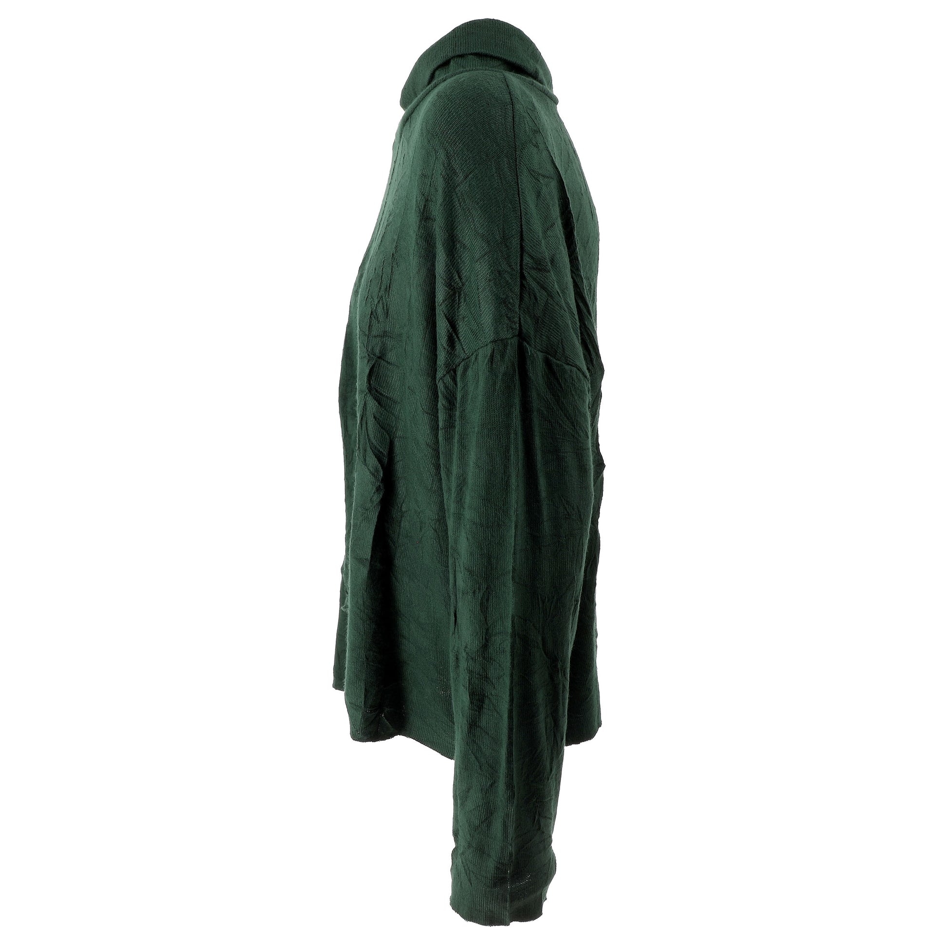 Maglia in jersey, dall’effetto stropicciato, con maniche lunghe, spalle scese e collo a lupetto.