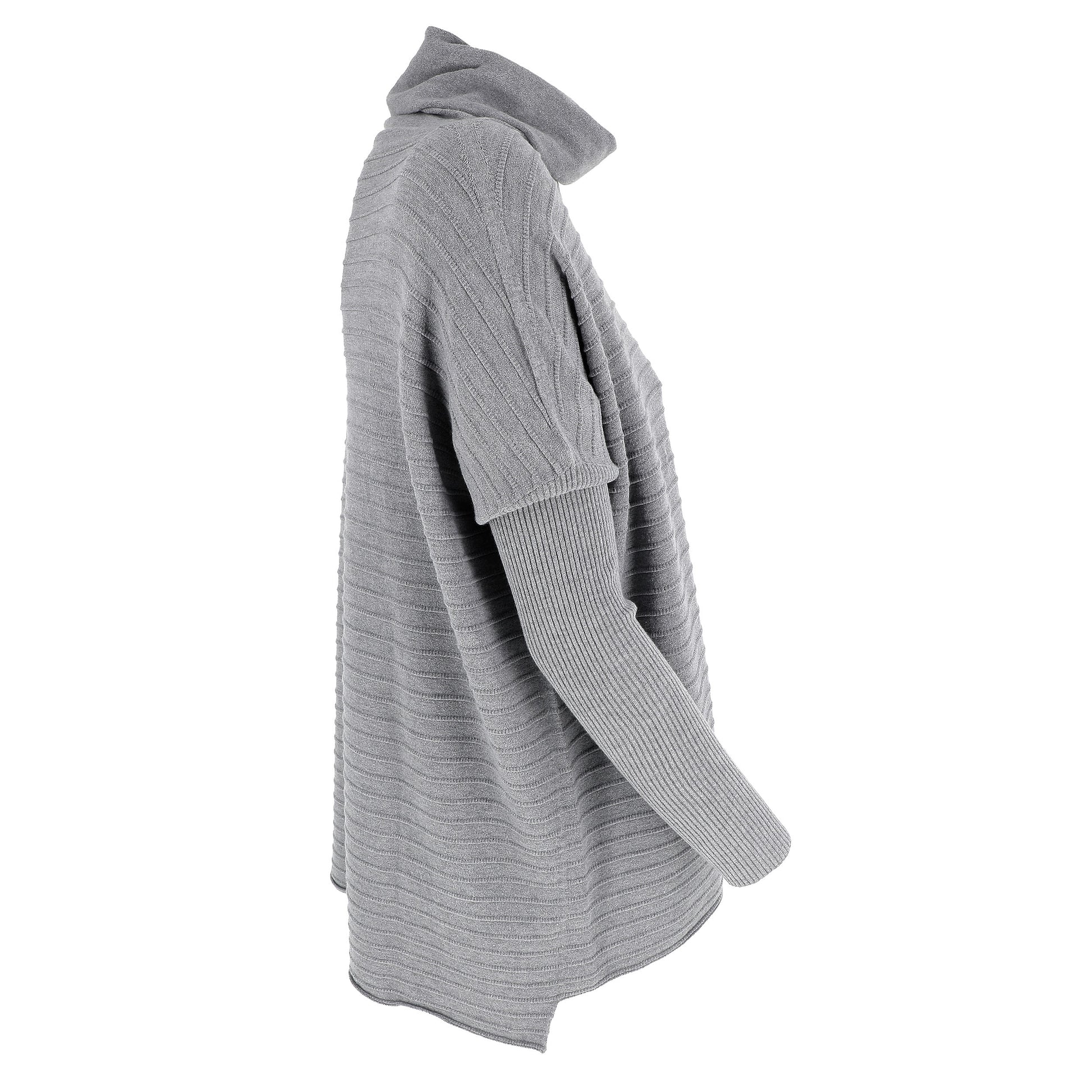 Maglia morbida in misto viscosa, dalla linea ampia, con trama in rilievo.