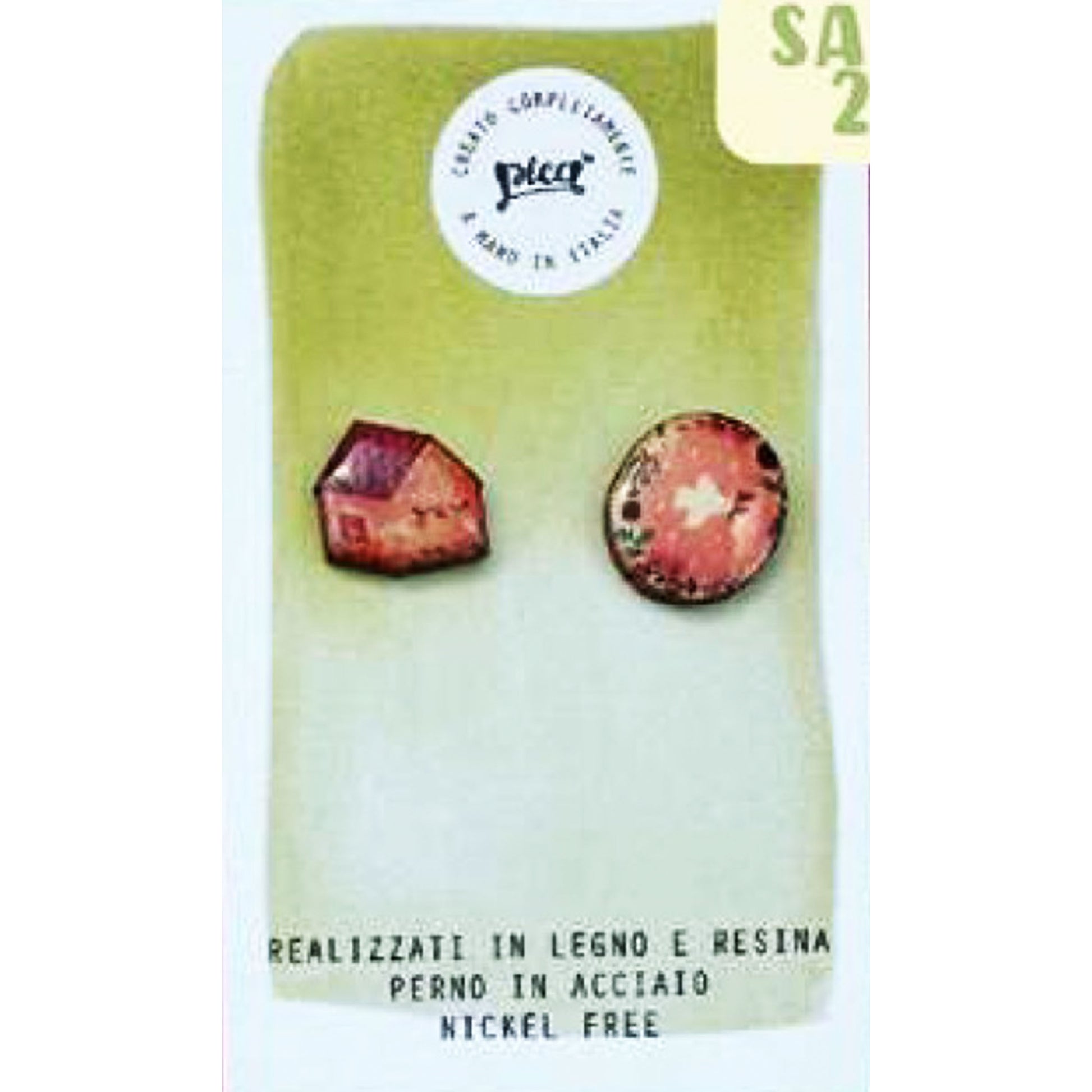 Picà - Orecchini in legno e resina con Casetta e Fiore
