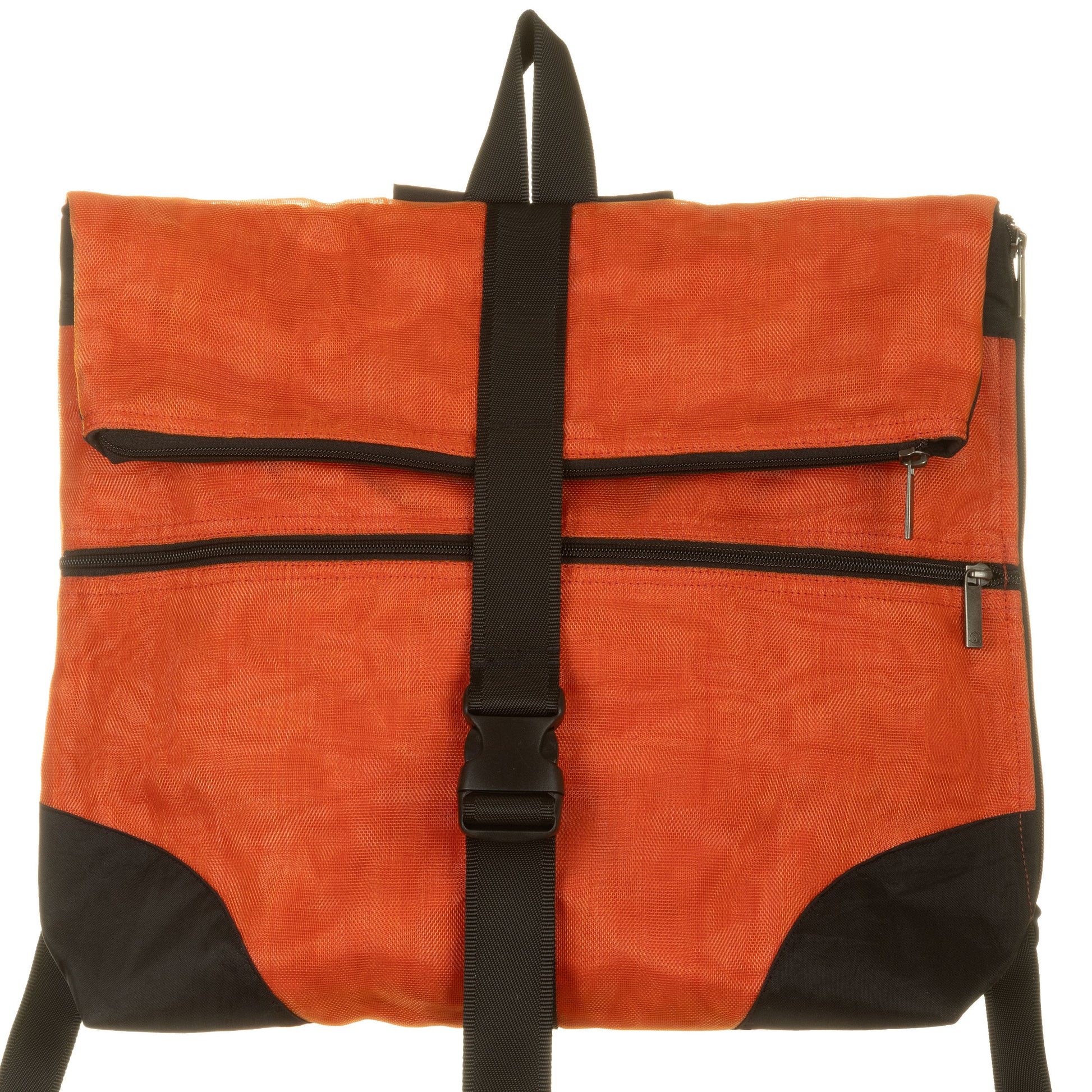Chiuso con zip e click-clack, taschini esterni con zip.